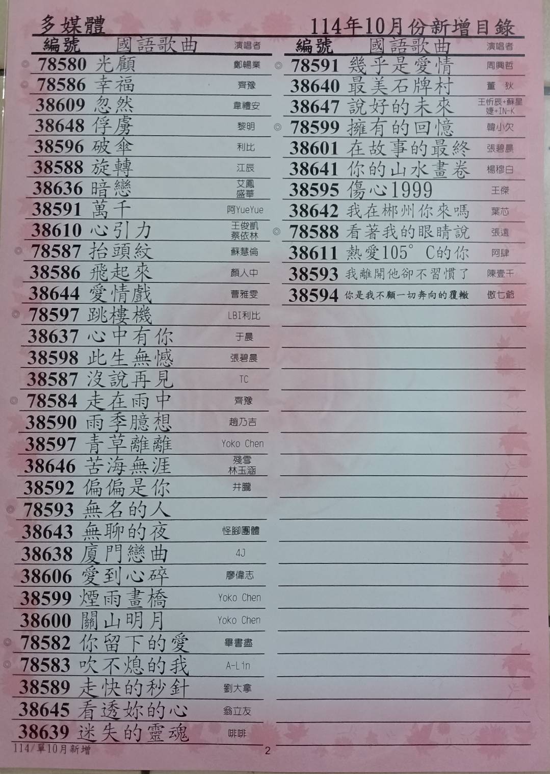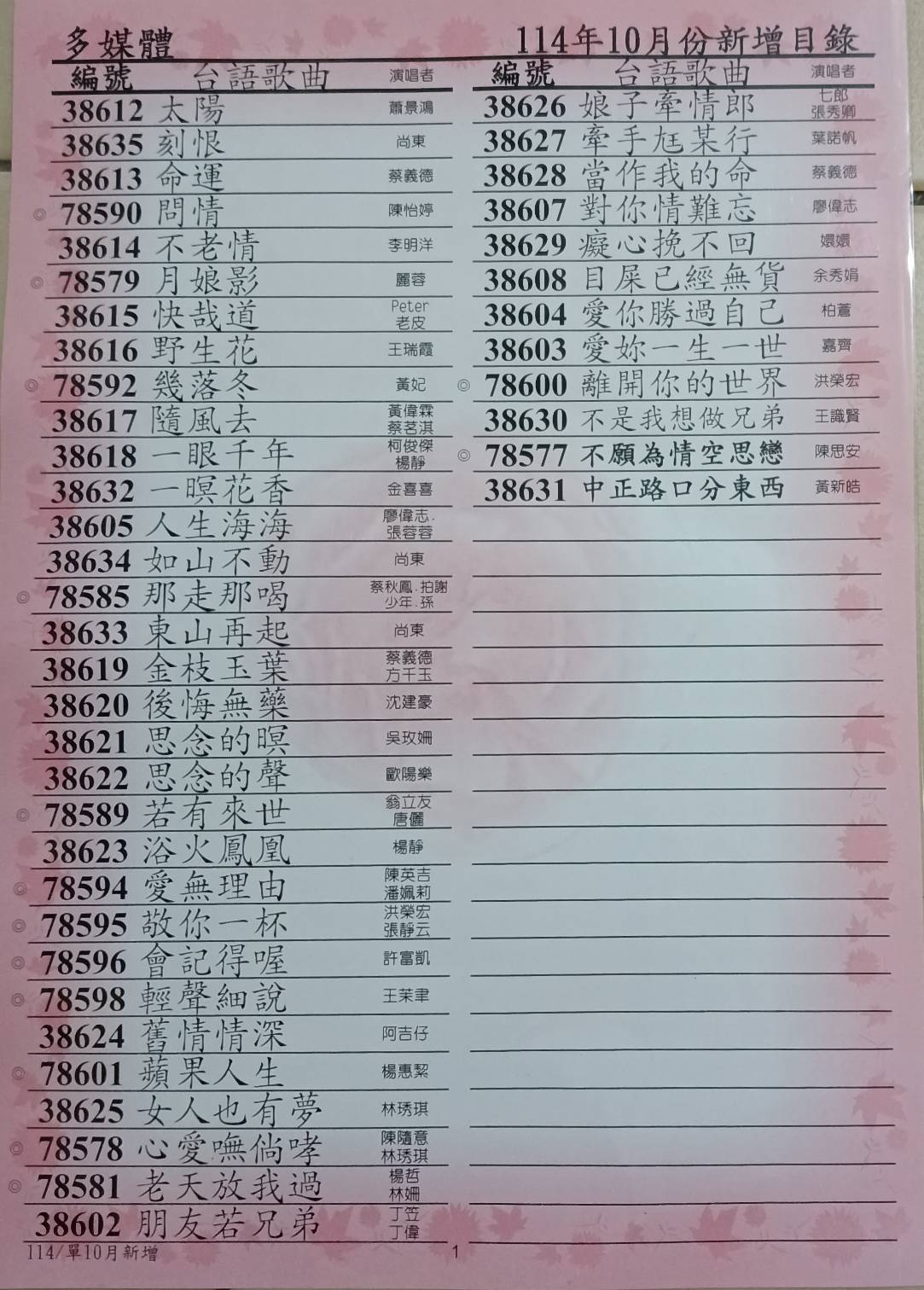 | 金嗓投幣式 114年歌單下載請點欲下載 月份 | |||||||||||||