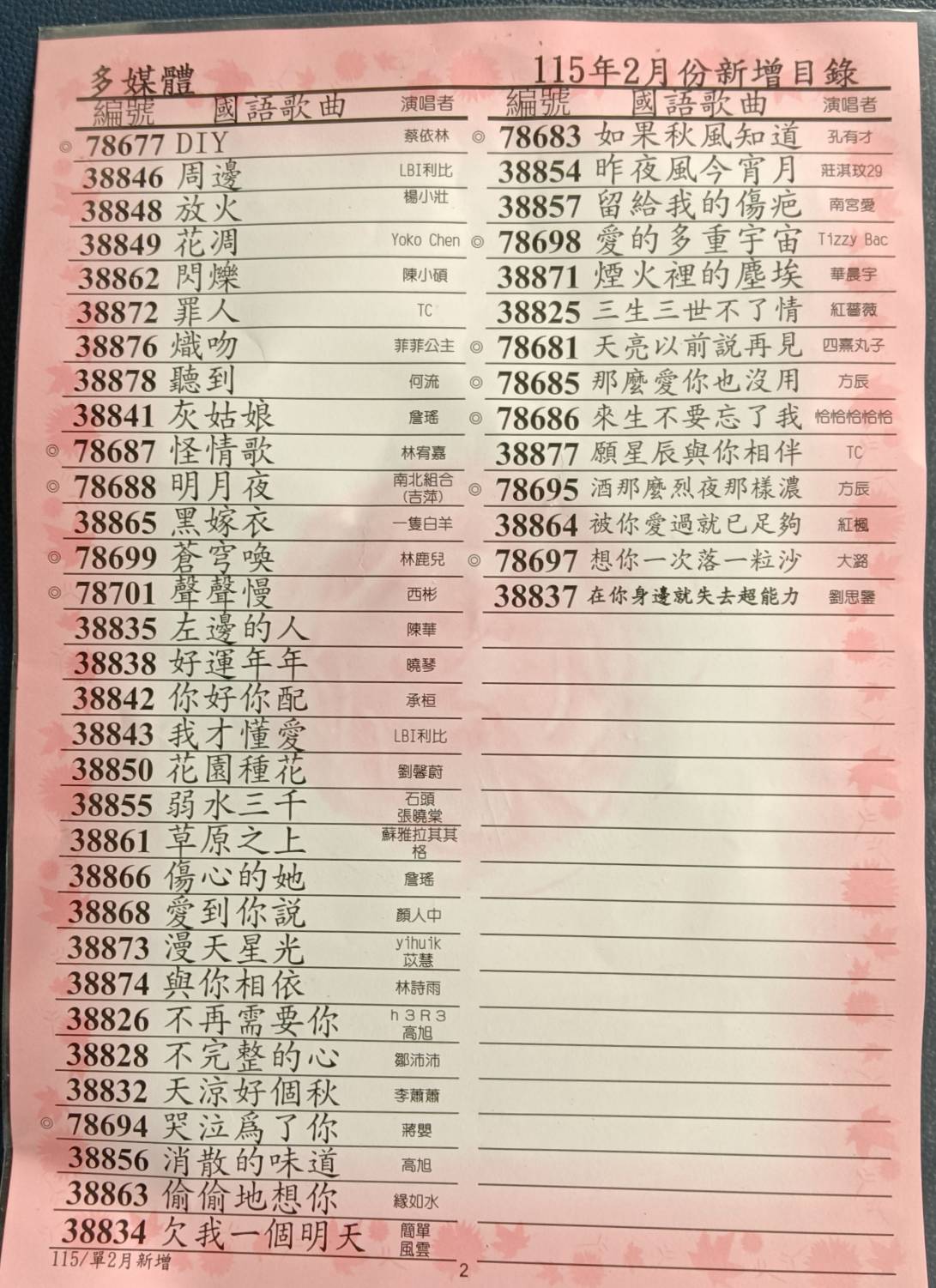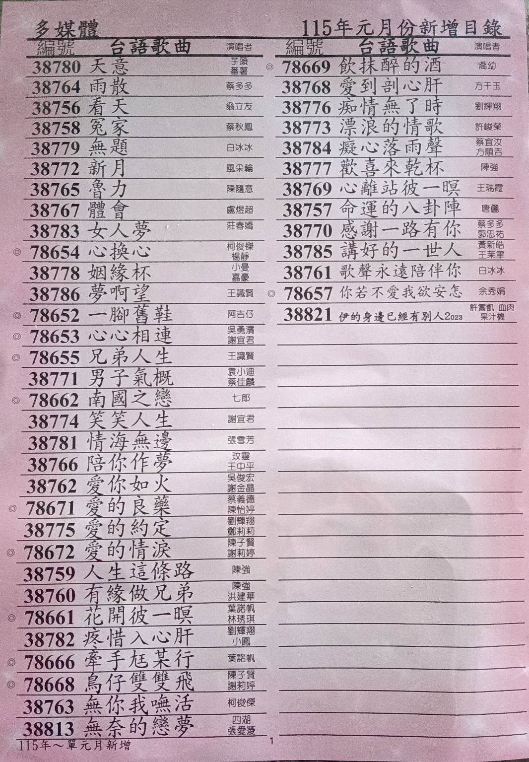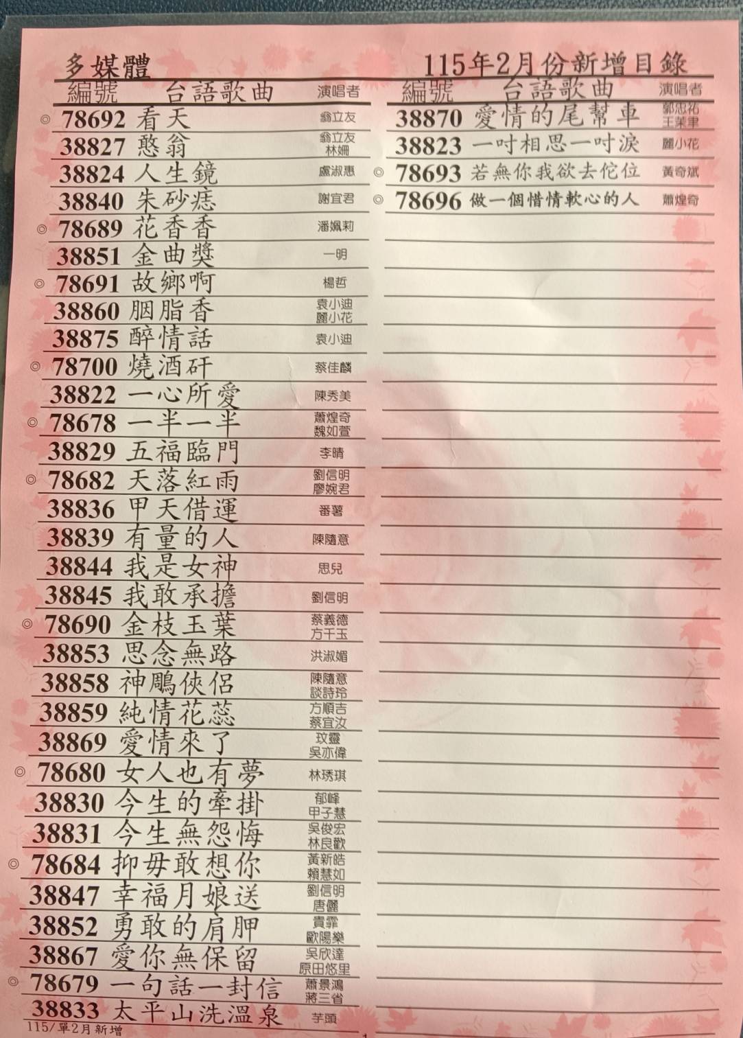 | 金嗓投幣式 115年歌單下載請點欲下載 月份 | ||||||||